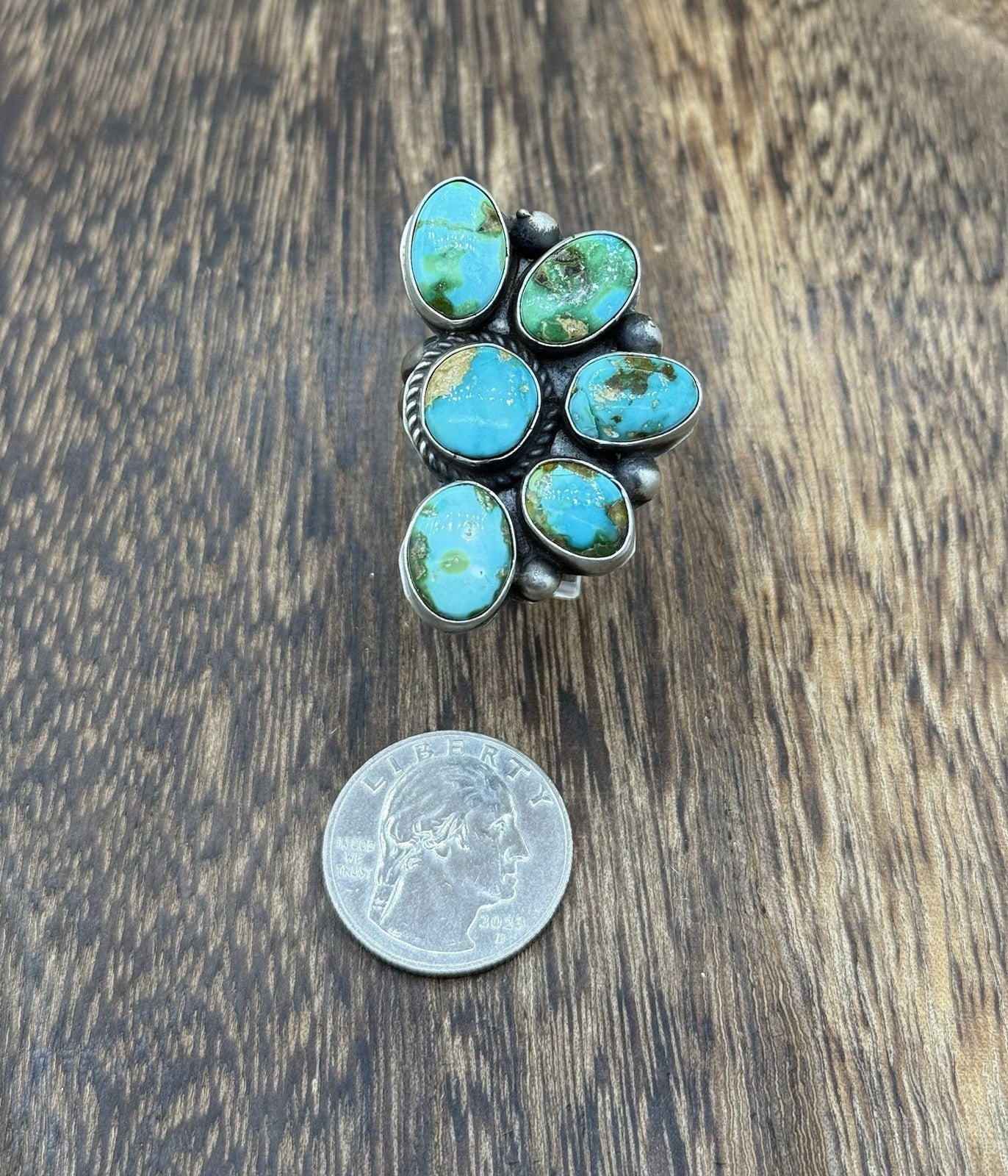 Navajo Handmade Sterling Silver Sonoran Gold Turquoise Half Cluster Ring Size 8