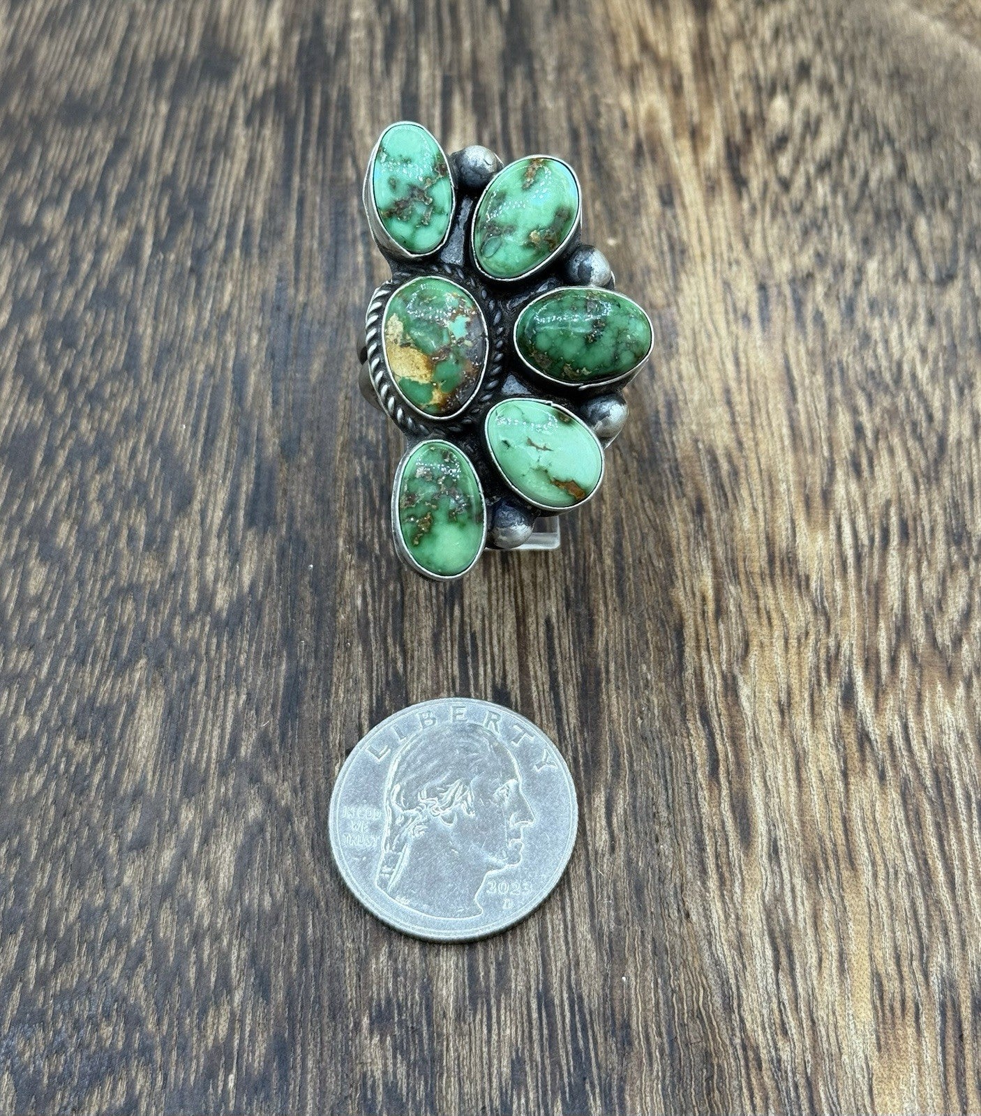 Navajo Handmade Sterling Silver Sonoran Gold Turquoise Half Cluster Ring Size 8