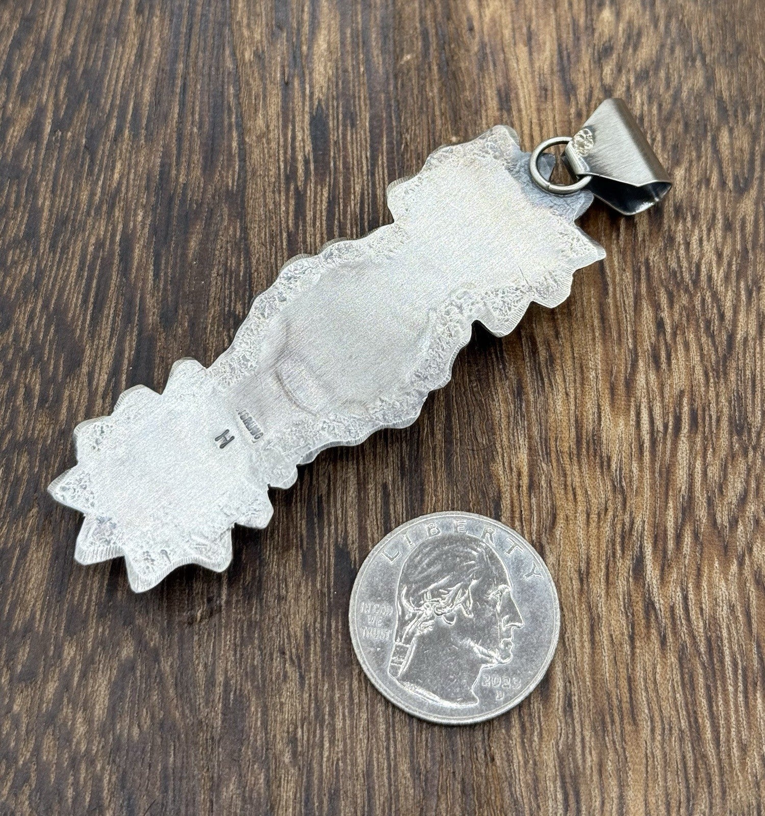 Navajo Handmade Sterling Silver Sonoran Gold Turquoise Stamped Drop Pendant