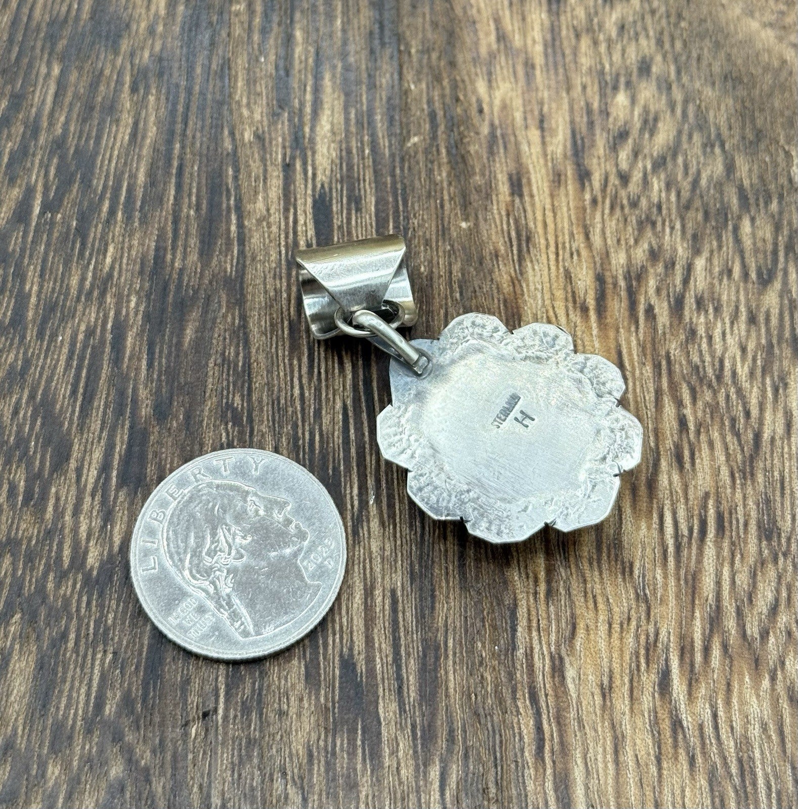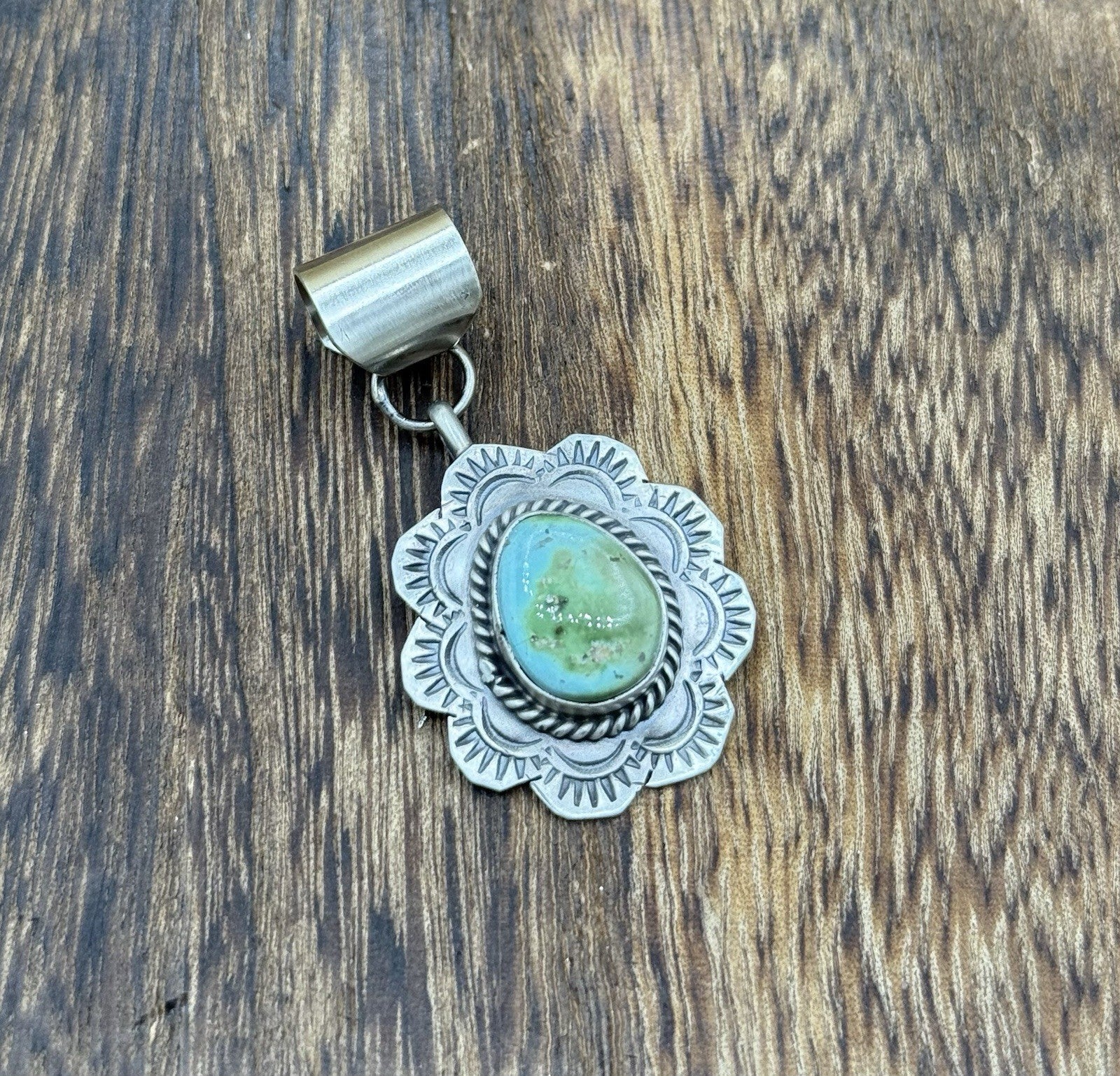 Navajo Handmade Sterling Silver Sonoran Gold Turquoise Stamped Drop Pendant