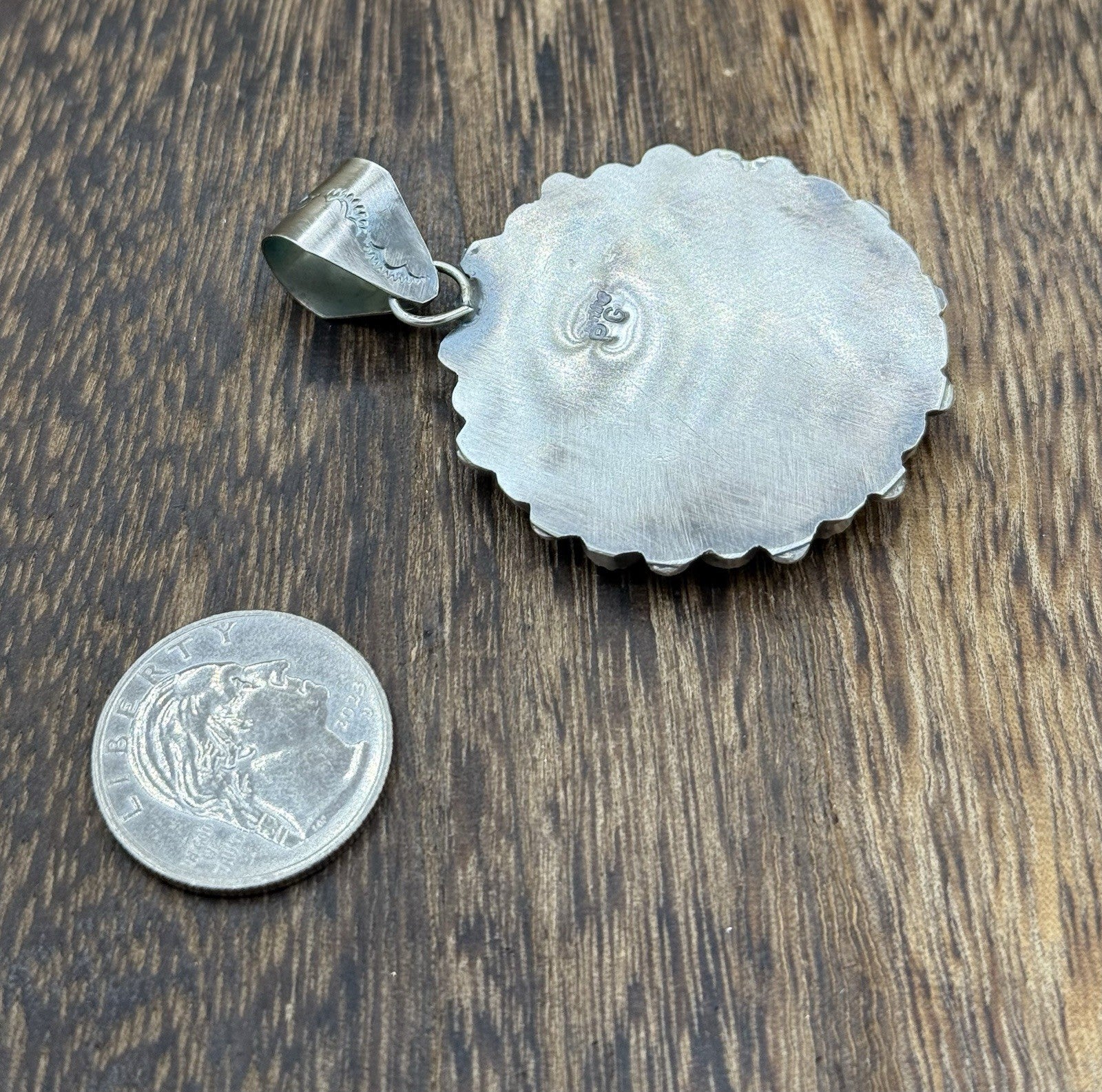 Navajo Handmade Sterling Silver Sonoran Turquoise Cluster Buffalo Coin Pendant