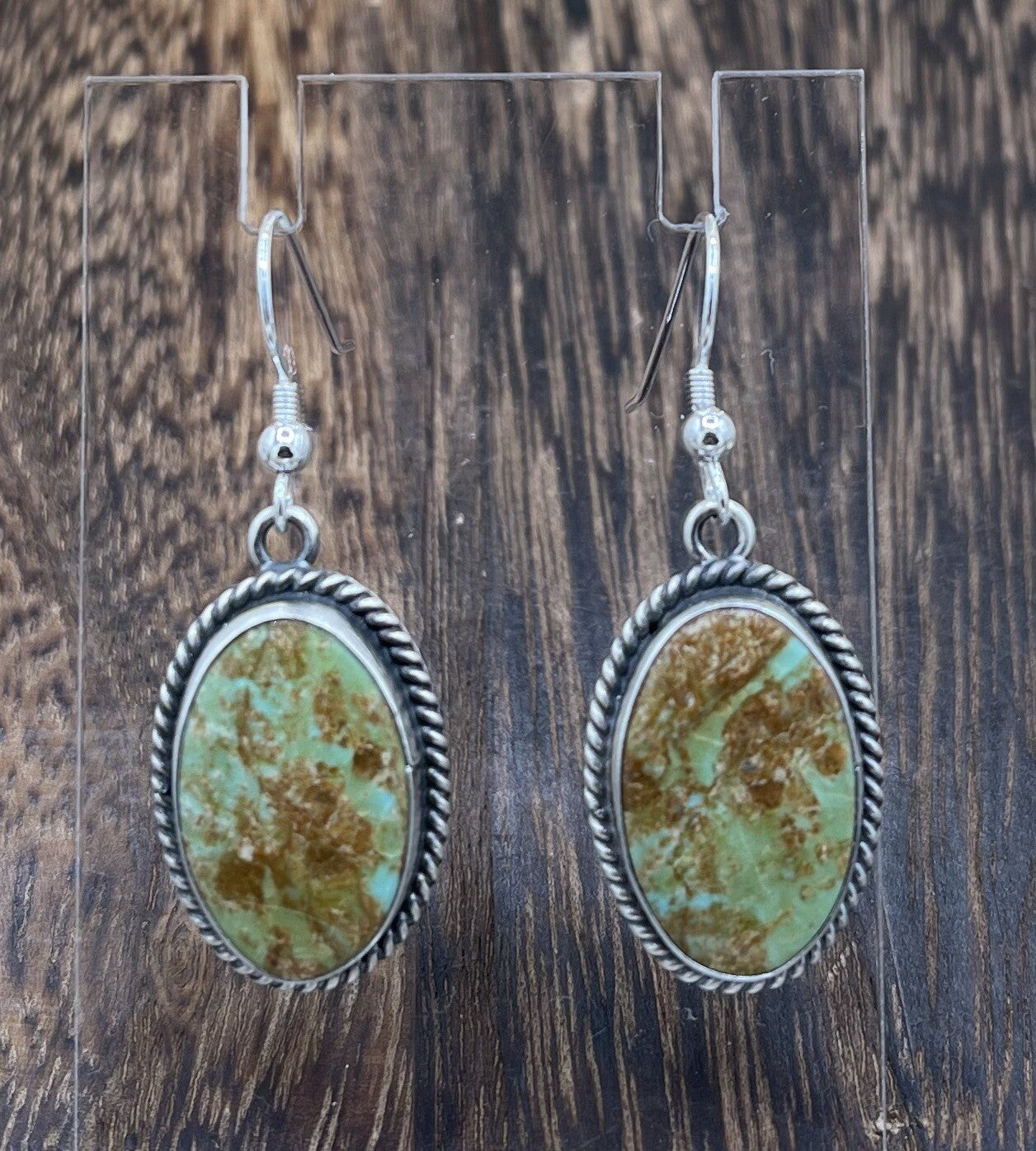 Navajo Handmade Sterling Silver Sonoran Turquoise Dangle Earrings By Byron Begay