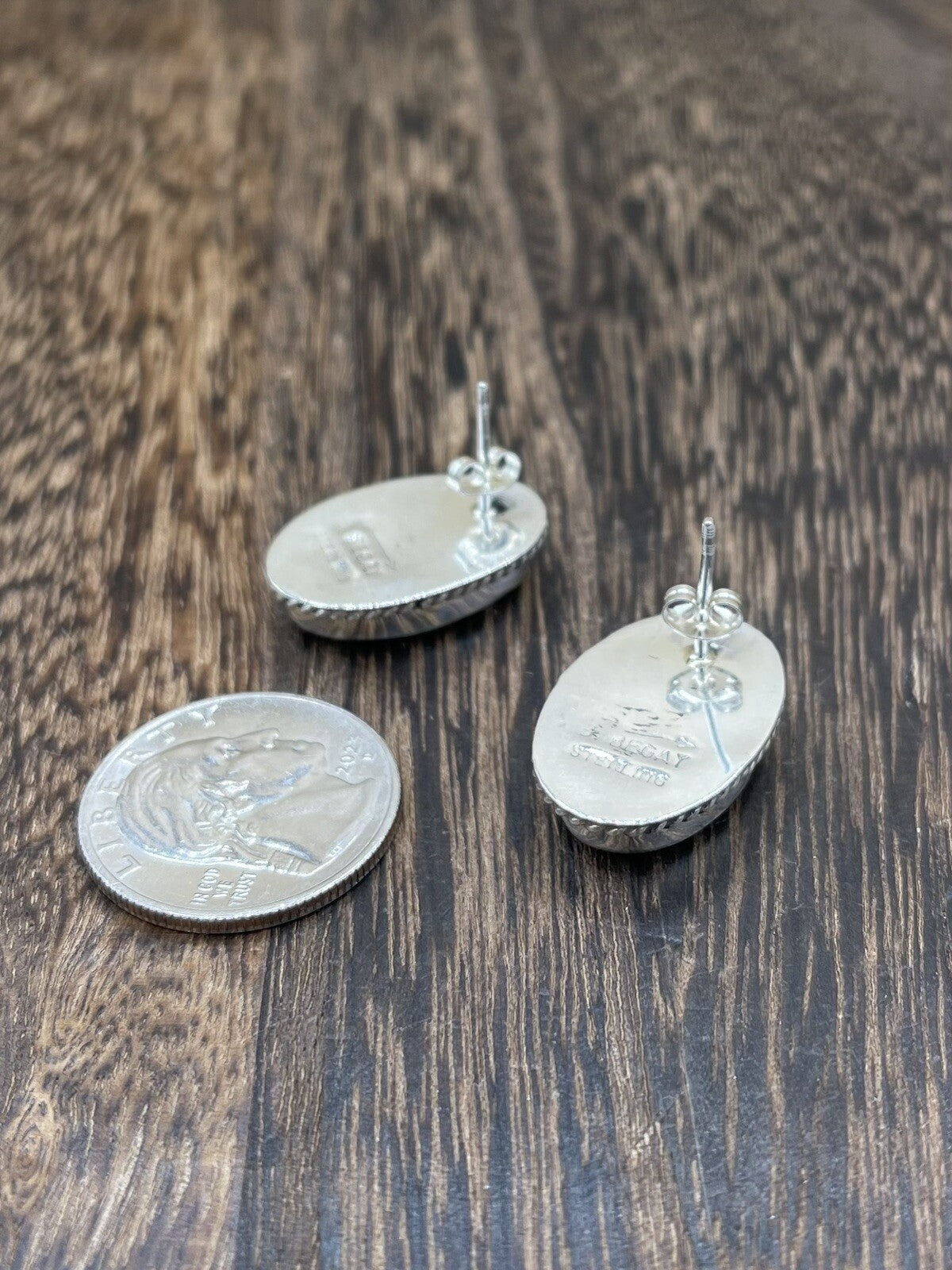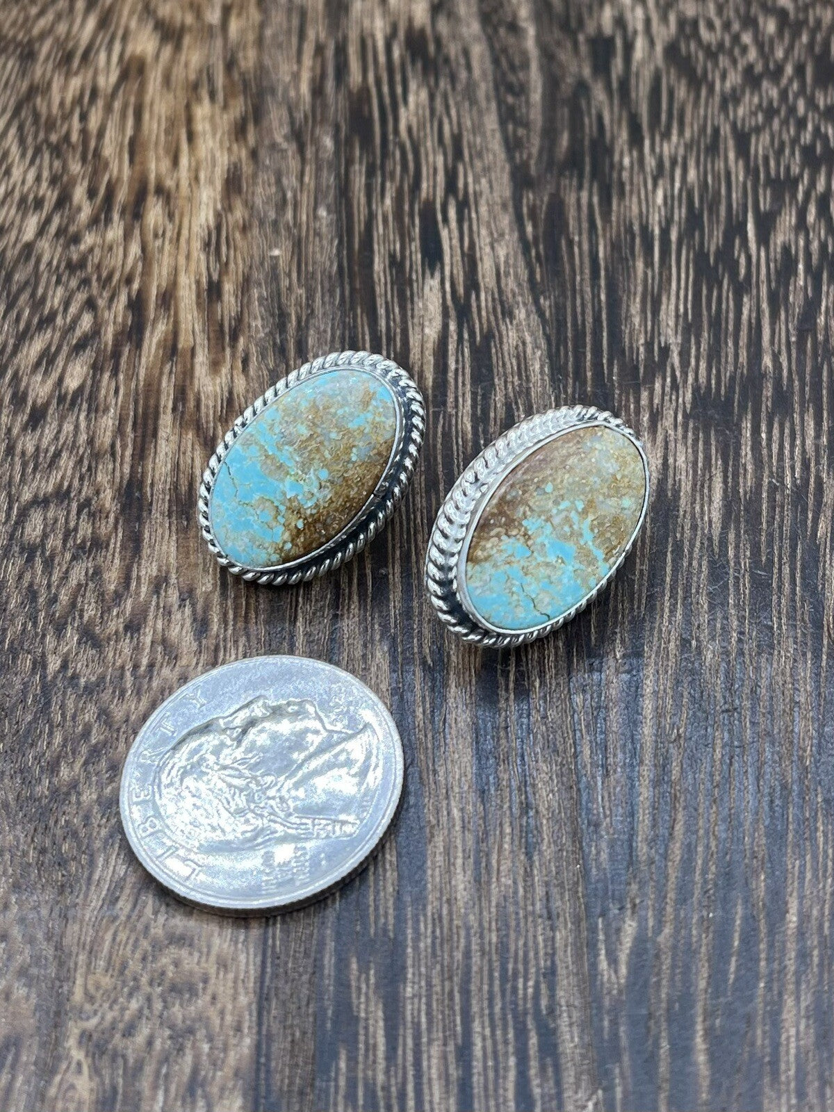 Navajo Handmade Sterling Silver Sonoran Turquoise Post Stud Earrings Byron Begay