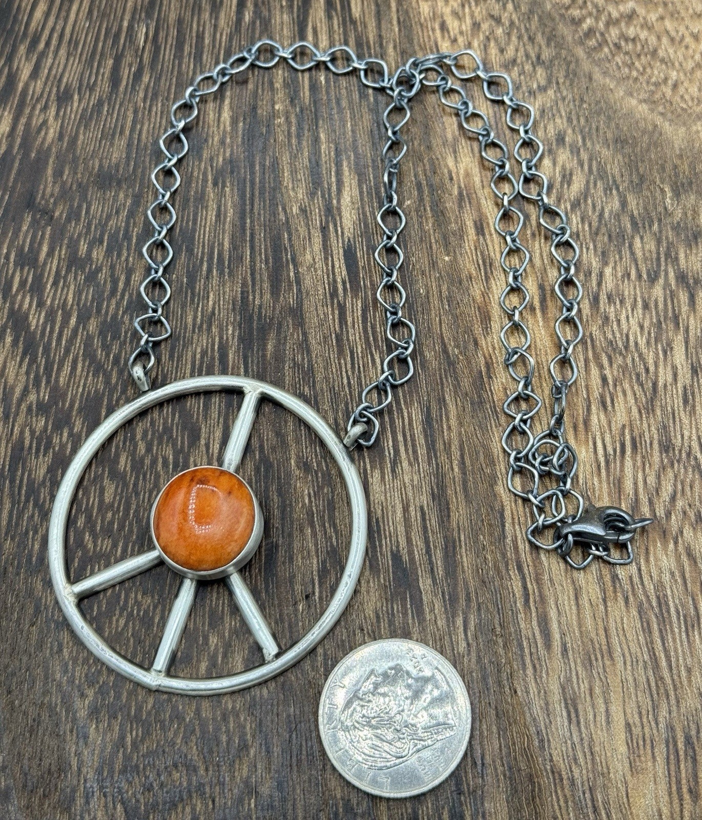 Navajo handmade Sterling Silver Spiny Oyster Shell Peace Hippie Necklace 18β