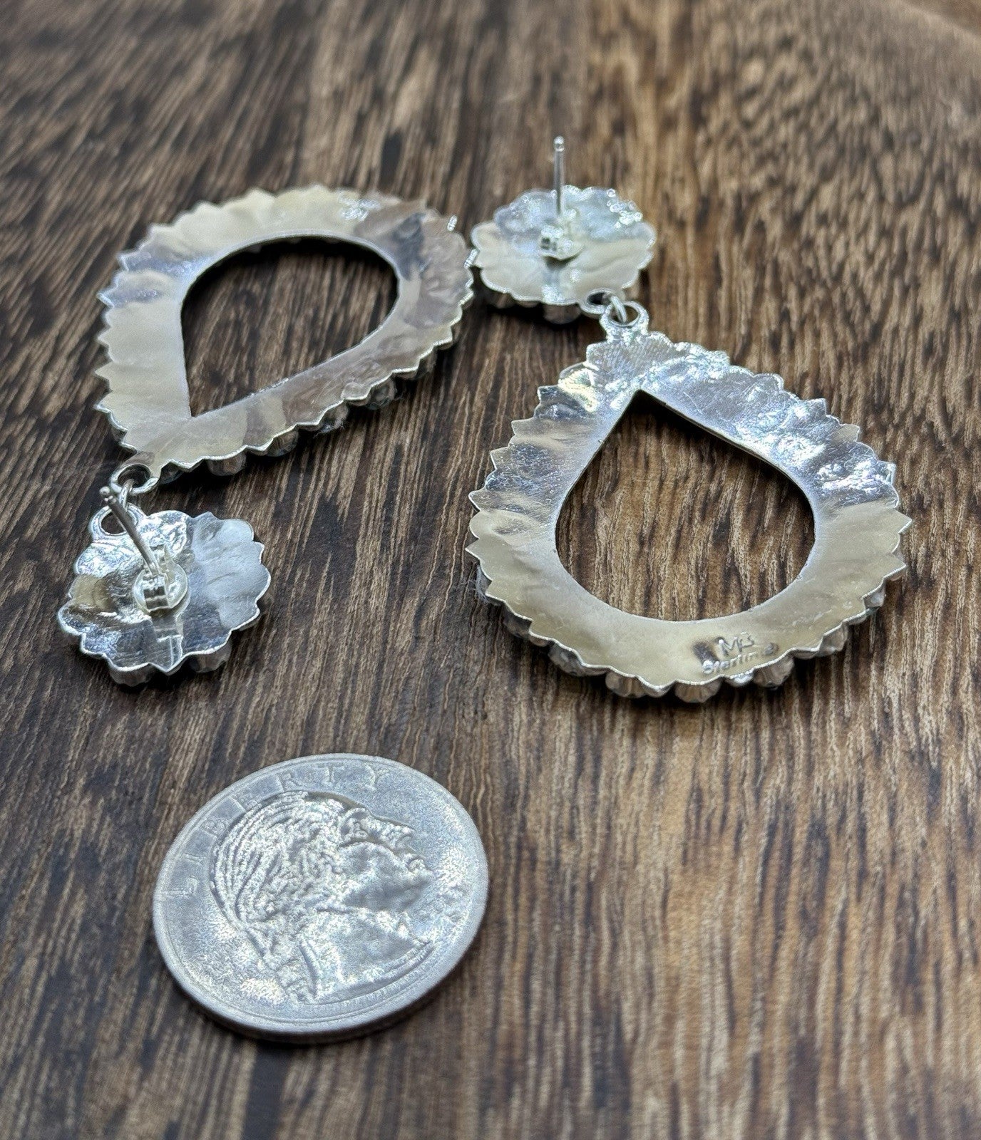 Navajo Handmade Sterling Silver Turquoise Cluster Post Drop earrings Large