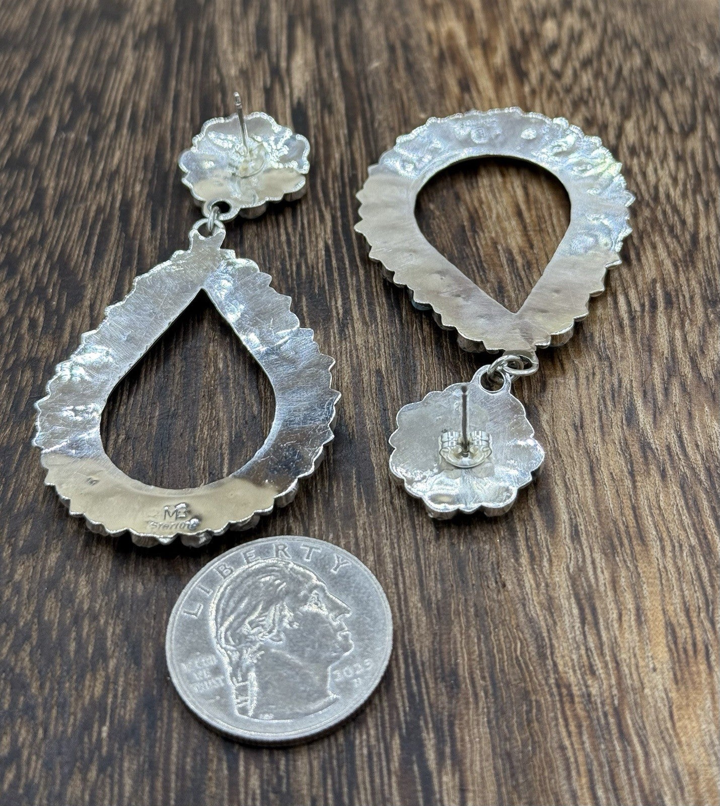Navajo Handmade Sterling Silver Turquoise Cluster Post Drop earrings Large