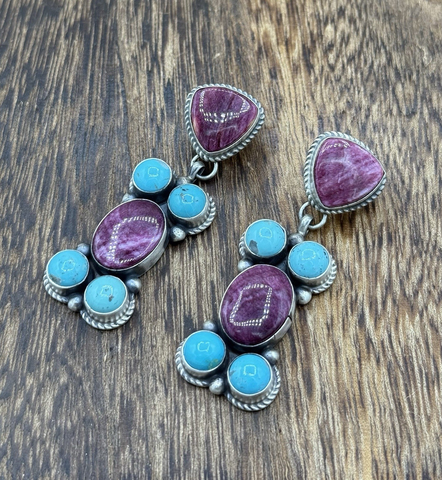 Add a touch of Native American heritage to your jewelry collection with these beautiful post dangle earrings. Handmade by Navajo artisan Debra Smith, these sterling silver earrings feature stunning turquoise and spiny oyster shell stones in a bezel setting. The old look of the earrings adds to their charm and appeal.