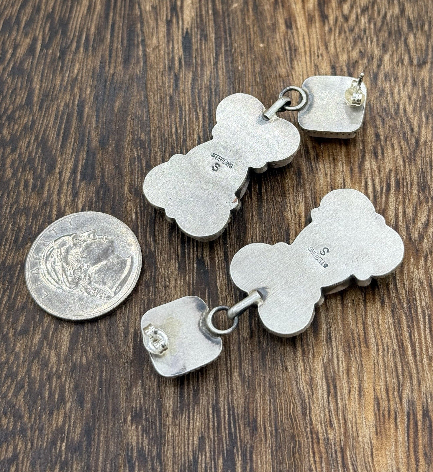 Navajo Handmade Sterling Silver Turquoise & Spiny Oyster Post Dangle Earrings