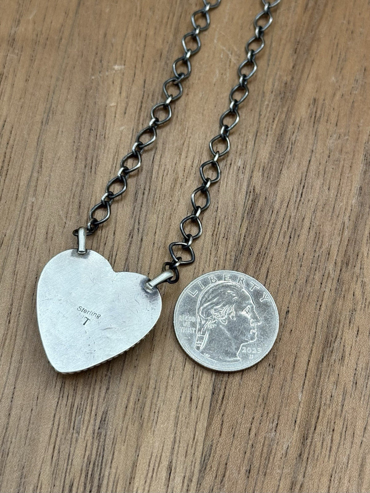 Navajo Handmade Sterling Silver Violet Rose & Blue Dahlia Bar Necklace 18”