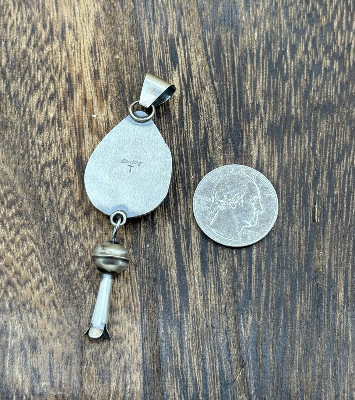 Elevate your jewelry collection with this exquisite Navajo handmade pendant. Crafted by Tricia Smith, this stunning piece features a violet rose & blue dahlia compressed dyed stone, set in sterling silver.