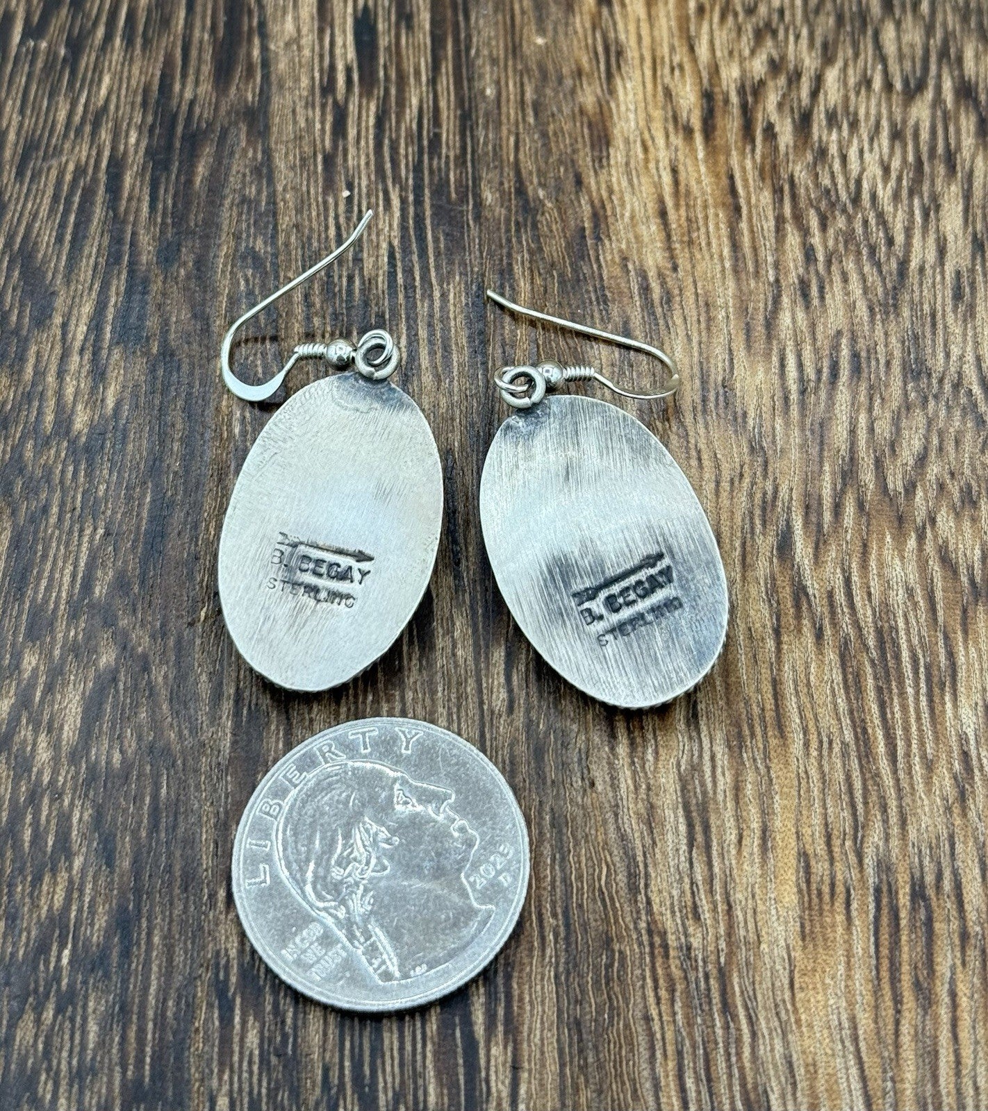 Add a touch of Native American heritage to your jewelry collection with these beautiful dangle earrings. Handmade by Navajo artisan Byron Begay, these sterling silver earrings feature Violet Rose & Blue Dahlia (dyed) stone in a bezel setting.