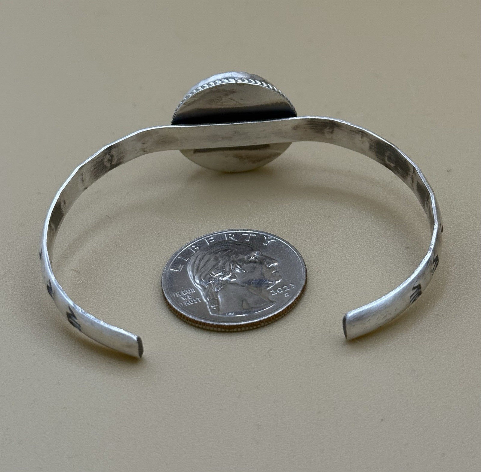 Navajo Handmade Sterling Silver Violet Rose Dahlia Stamped Stacker Cuff Bracelet