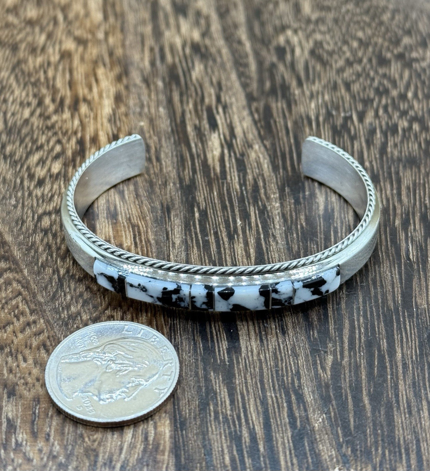 Navajo Handmade Sterling Silver White Buffalo Inlay Cuff Bracelet Francis Yazzie