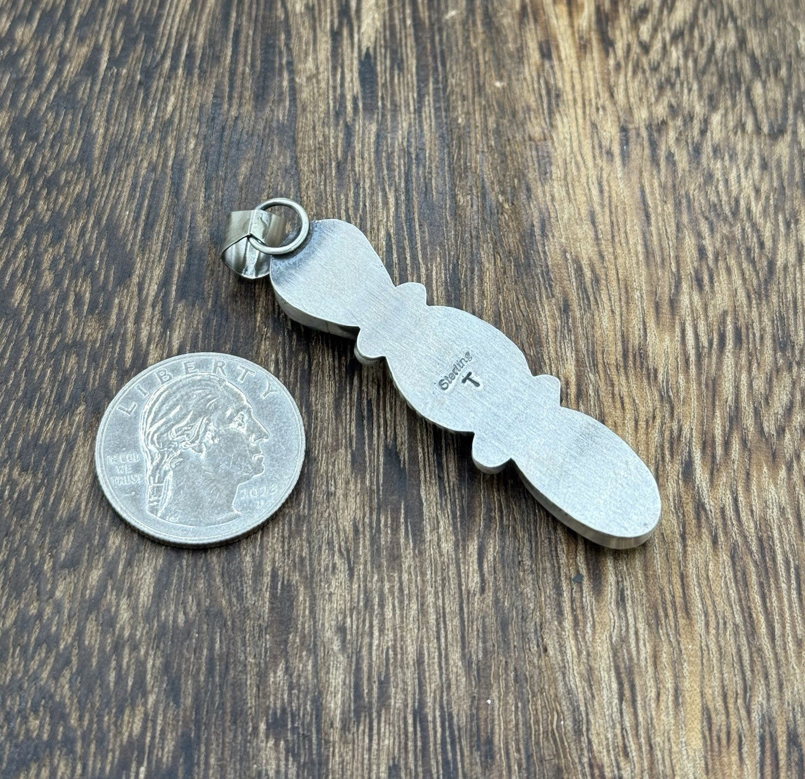 Elevate your jewelry collection with this exquisite Navajo handmade pendant. Crafted by Tricia Smith, this stunning piece features a cluster of turquoise stones , set in a sterling silver bar setting.