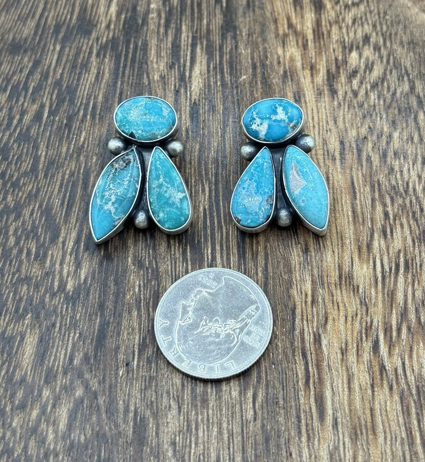 Navajo Handmade Sterling Silver White Water Turquoise Post Cluster Earrings