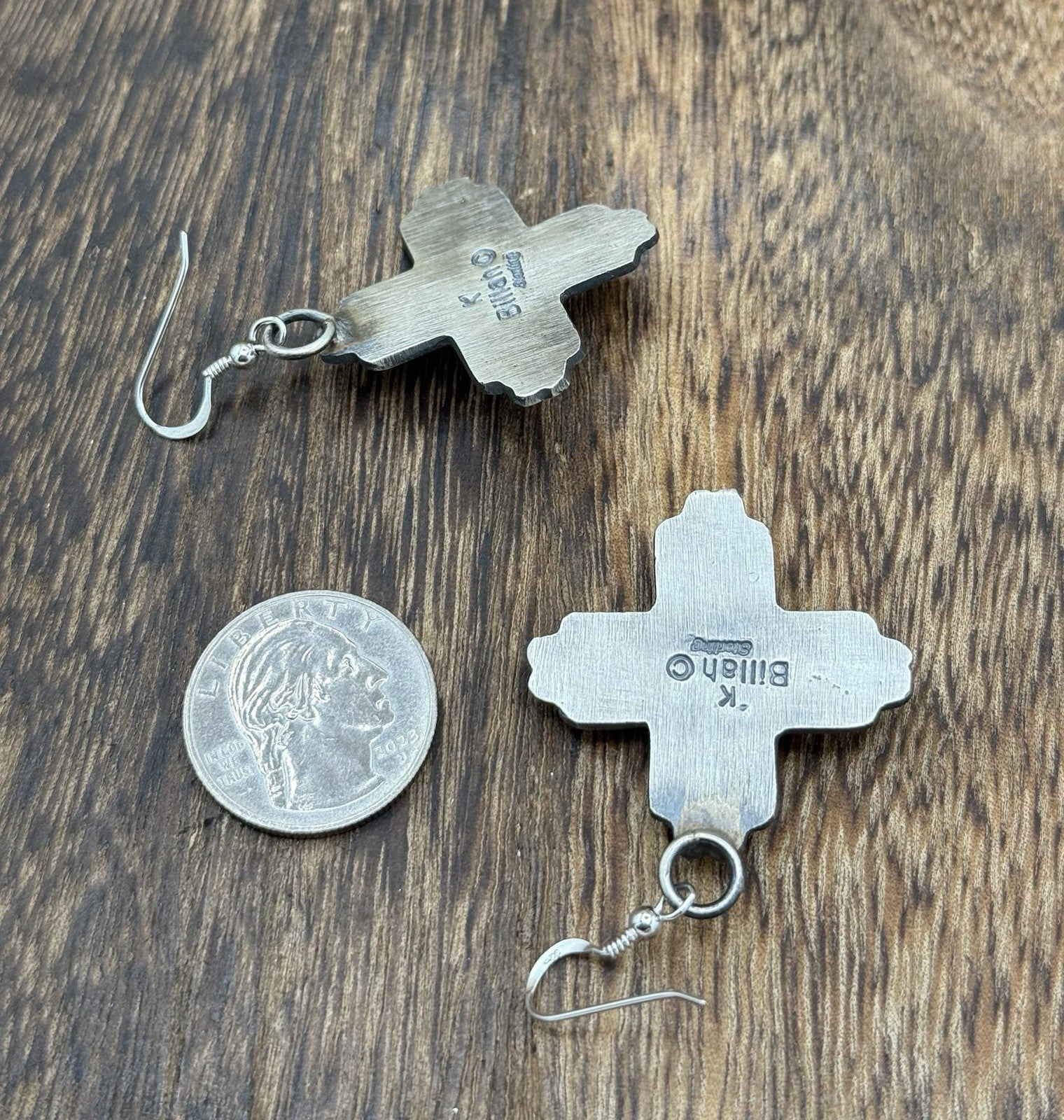 Add a touch of Native American heritage to your jewelry collection with these beautiful dangle earrings. Cast/Handmade by Navajo artisan Kevin Billah, these sterling silver earrings feature stunning Golden hills Turquoise stones in a bezel setting. The old look of the earrings adds to their charm and appeal.