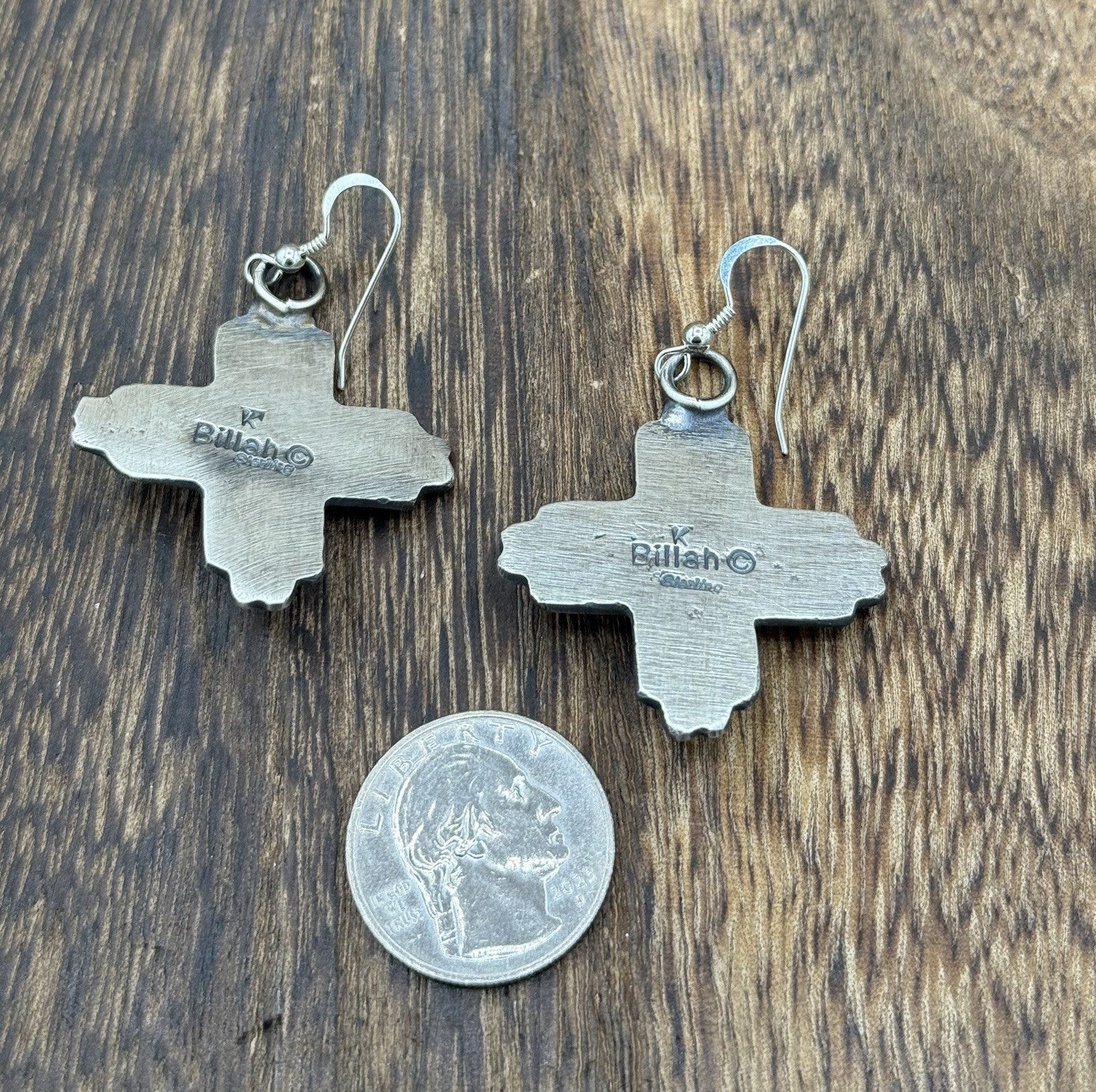 Navajo Handmade Sterling Silver Zia Kingman Turquoise Earrings Kevin Billah