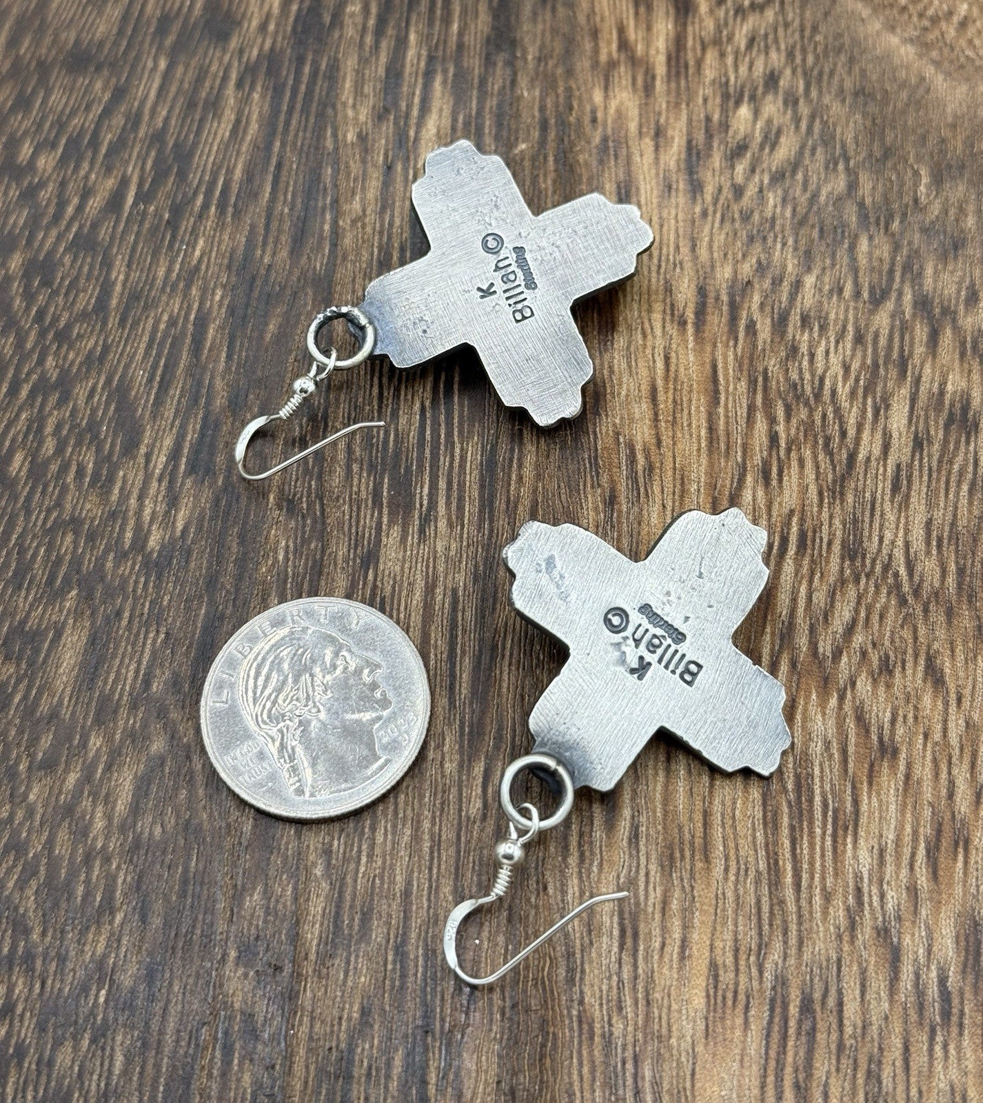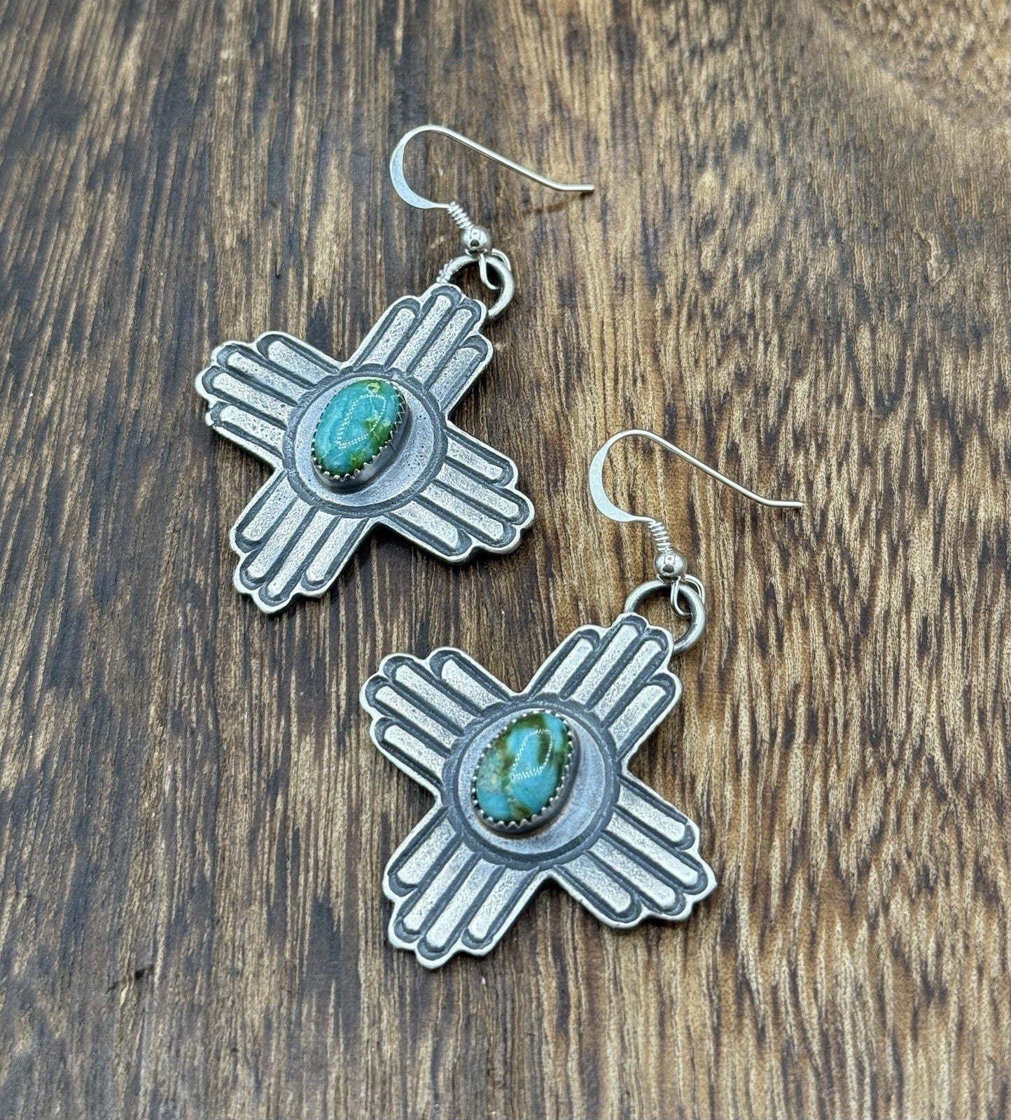 Navajo Handmade Sterling Silver Zia Sonoran Gold Turquoise Earrings Kevin Billah