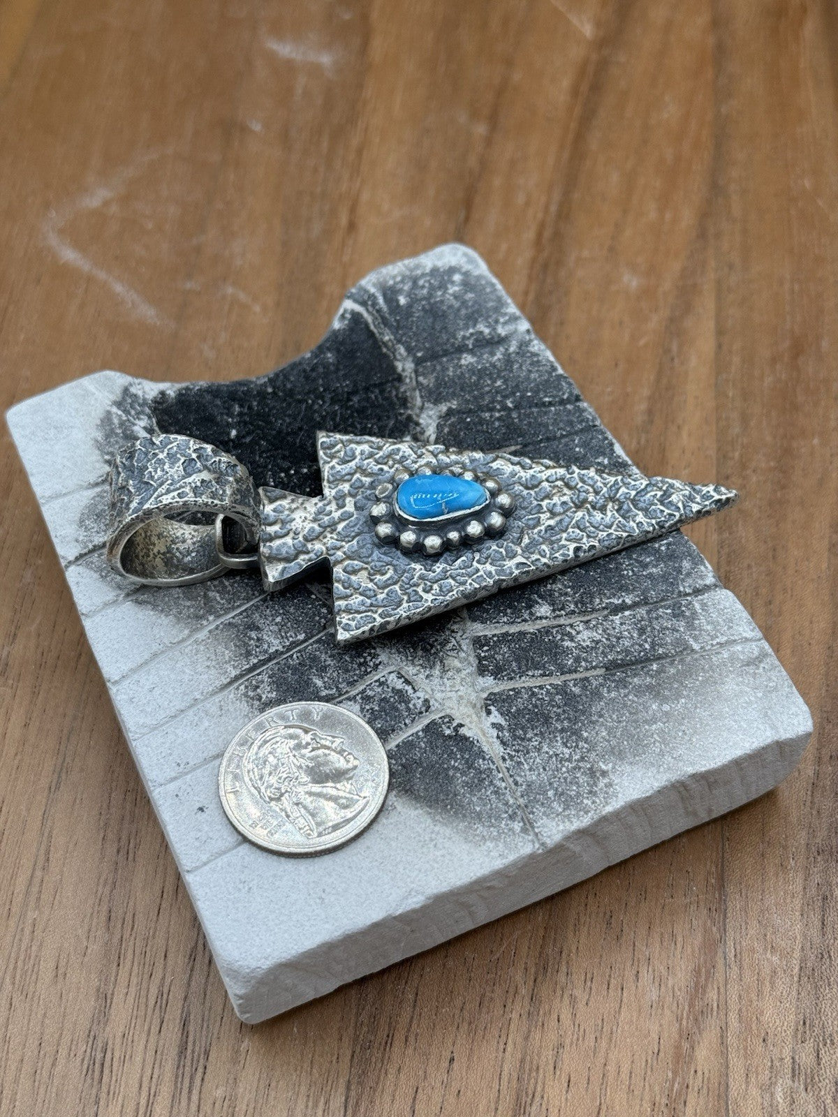 Navajo Silver Blue Ridge Turquoise Arrowhead Pendant Tufa Cast By Merle House